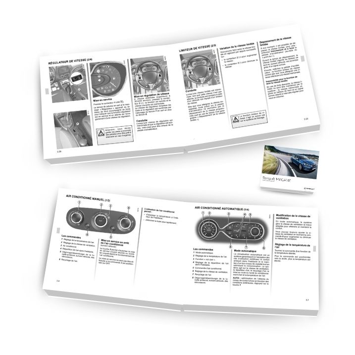 Nos notices sont épaisses et varient de 100 à 500 pages selon le modèle du véhicule. Chaque manuel est riche en informations détaillées, couvrant tous les aspects de l'utilisation et de l'entretien de votre Renault MEGANE 4. Que vous ayez besoin d'informations basiques ou avancées, vous trouverez tout ce qu'il vous faut dans nos guides complets.