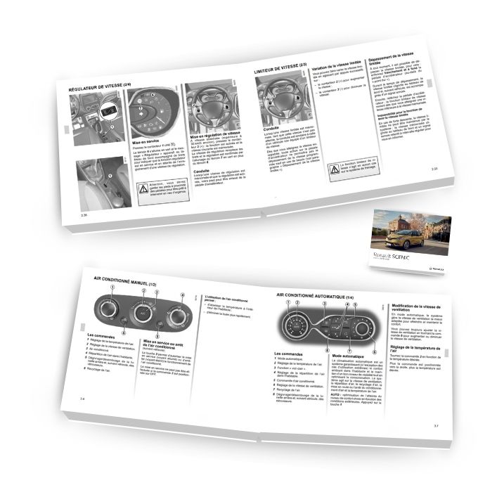 Offrez-vous une maîtrise totale de votre Renault SCENIC 4 avec notre notice et manuel d'utilisation neufs et d'origine constructeur, entièrement rédigés en français. Spécialement conçus pour vous fournir toutes les informations essentielles sur l'utilisation et l'entretien de votre Renault SCENIC 4, ces guides complets et détaillés vous aident à maximiser les performances et la longévité de votre véhicule.