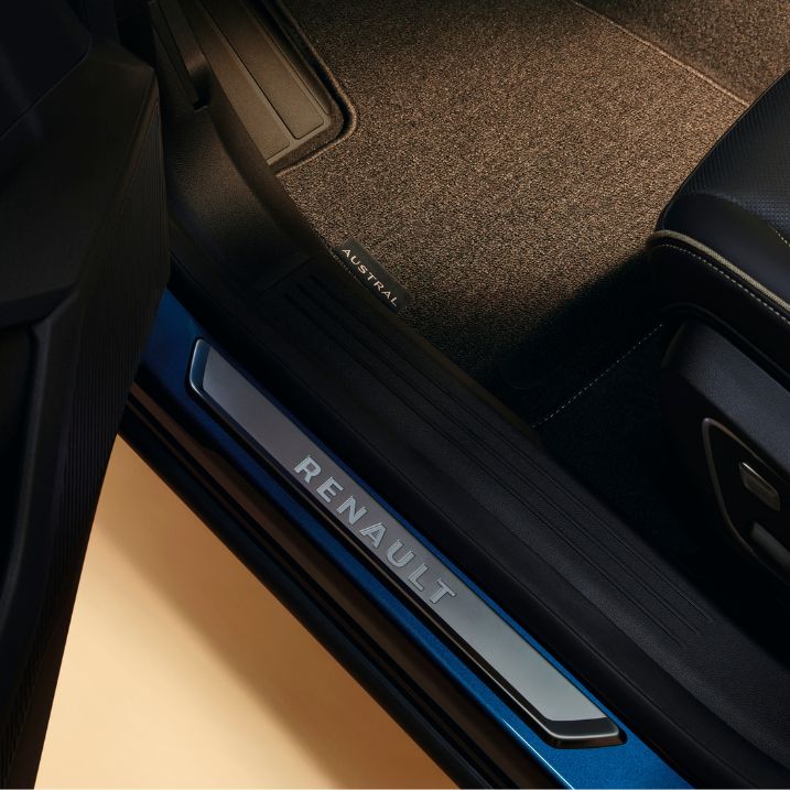 Protègent avec style le pas de porte du véhicule. Siglés Renault. En inox, ils s'intègrent harmonieusement à la finition au bas de marche.