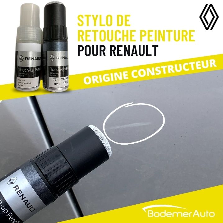 Le stylo de retouche vous permet de rattraper aisément les rayures, chocs, éclats de peinture. Certifié Renault, le stylo reprend les teintes exactes du constructeur pour rattraper une rayure de voiture de façon parfaite.
