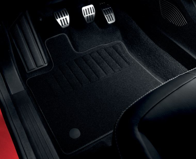 - Moquette et finition premium avec ganse et broderie de couleur noire.